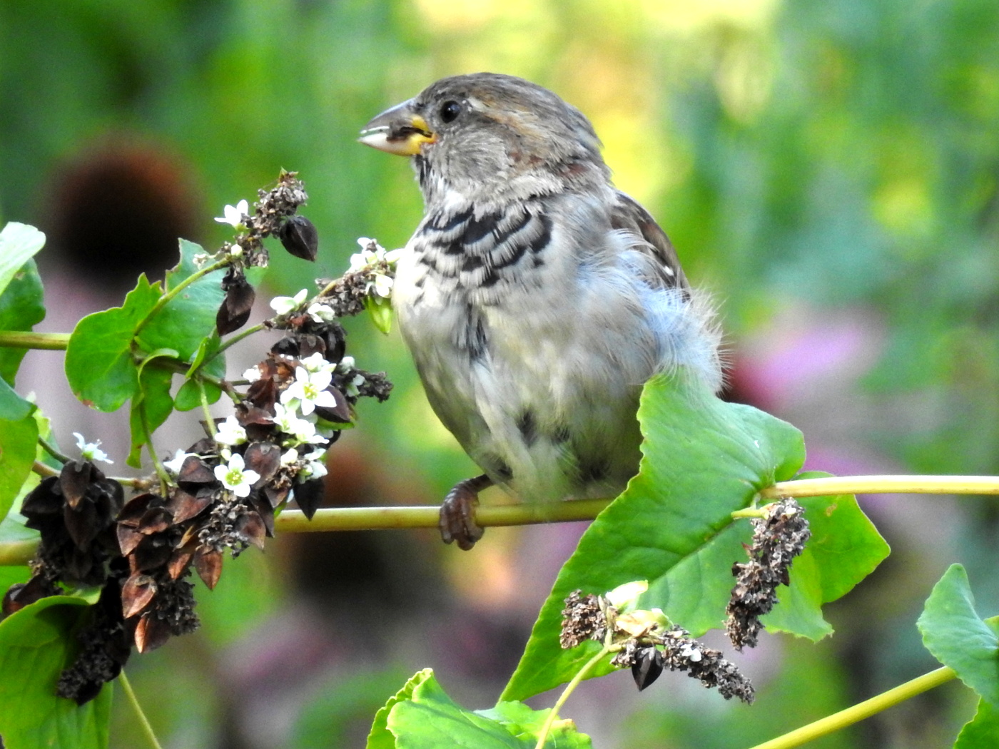 Der chinesische Spatzenkrieg ist übrigens nur der bekannteste. Auf die Idee waren zuvor schon andere gekommen, immer mit dem gleichen Ergebnis. Ohne Spatzen ist die Insektenplage vorprogrammiert. Was immer die Vögel in unseren Gärten ernten, es wäre nicht dort, wenn sie es nicht vorher gegen Raupen und andere Schädlinge verteidigen würden. Insofern ist es nur legitim, wenn sie sich ihren Teil der Ernte holen. Der Herbst ist auch eine Zeit des Überflusses. Egal wie viel es im Buchweizenbeet raschelt, es fällt kaum auf, dass an den übervollen Pflanzen etwas fehlt.
