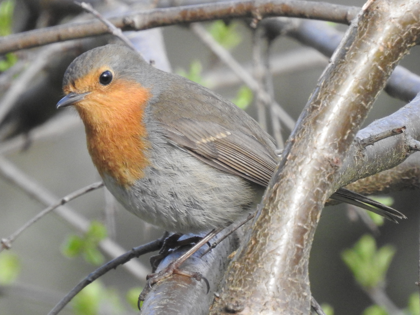 Seit Winterende sehe ich jeden Morgen durchs Fenster ein Rotkehlchen bei der Ansitzjagd. Das nistet zweifellos ganz in der Nähe. Sobald ich mit der Kamera draußen bin, ist es weg. So geht das seit Wochen, aber mittlerweile sind wahrscheinlich die Jungen zu versorgen, und bei der Futtersuche wird das Elterntier unaufmerksam.