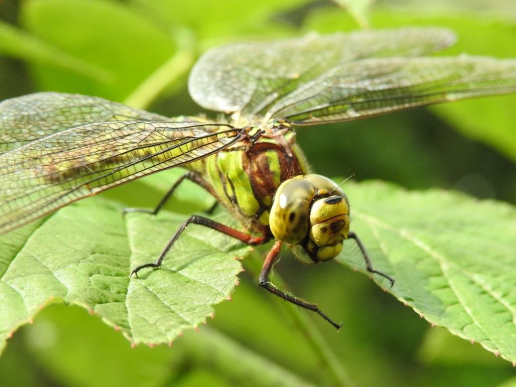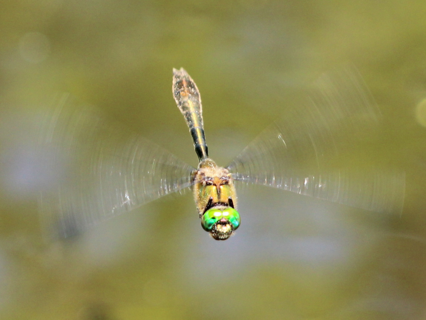 Und dann gibt es da natürlich auch noch die großen, man nennt sie Edellibellen. Am häufigsten sind es bei uns die Blaugrünen Mosaikjungfern. Im Sommer ist immer ein Männchen am Teich und verteidigt das Revier gegen ankommende Artgenossen.