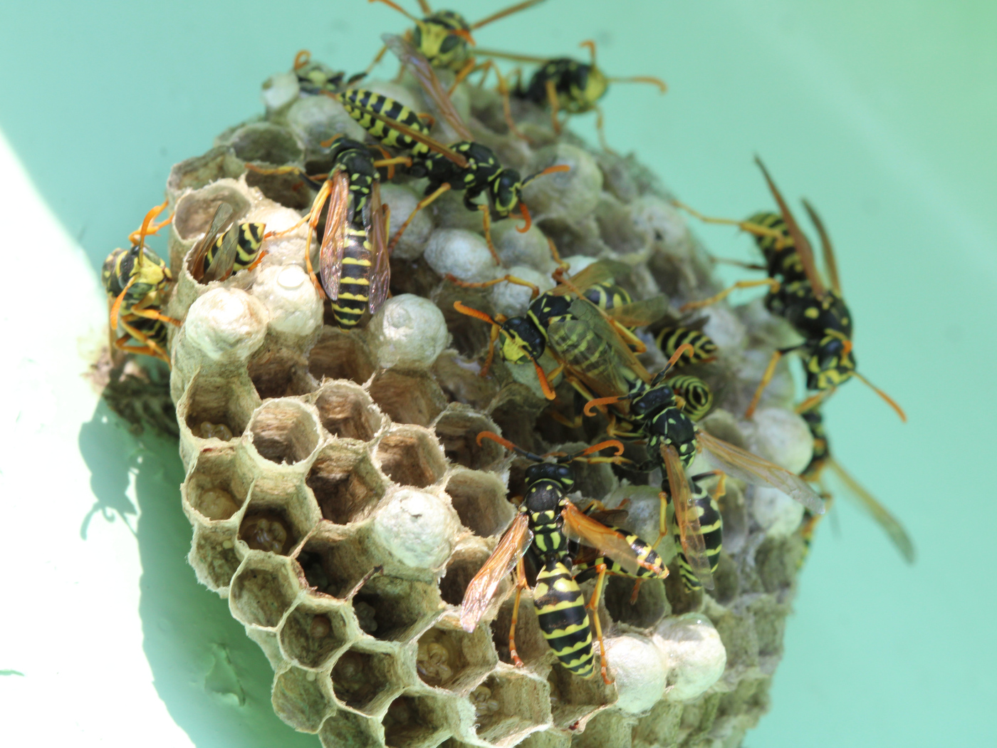 Ich drück mich um diese genaue Definition, weil ich zwar genaue Fotos vom Gesicht habe aber die Unterschiede zwischen der Gallischen und der Haus-Feldwespe für meine Formerkennung zu gering sind. Ich denke, es ist die Haus-Feldwespe, aber bei uns im Süden könnte auch die Gallische einwandern. Macht aber auch nicht wirklich einen Unterschied, was das Verhalten betrifft, vermute ich.