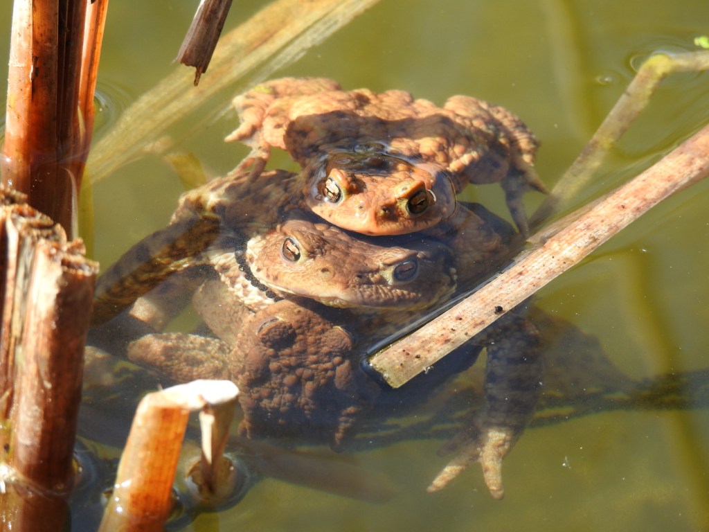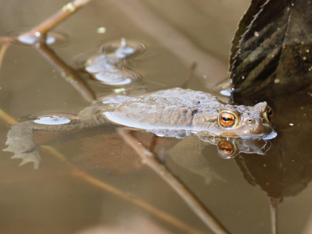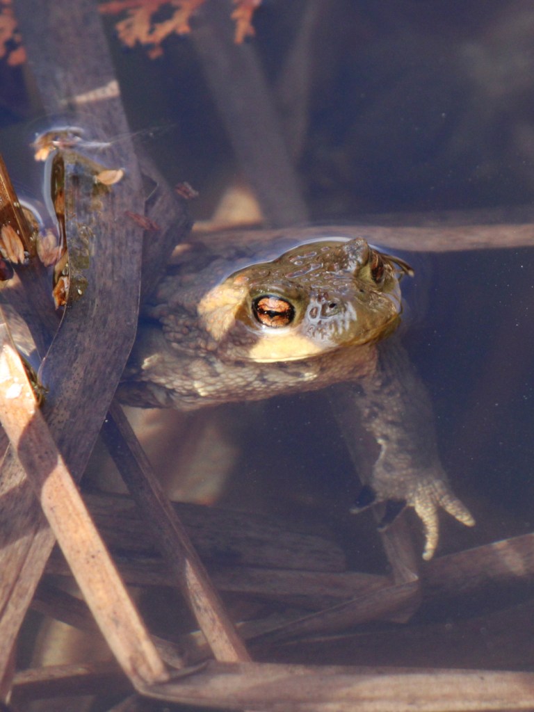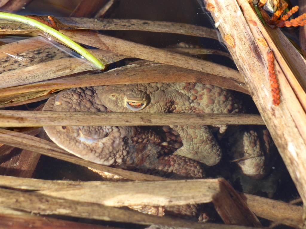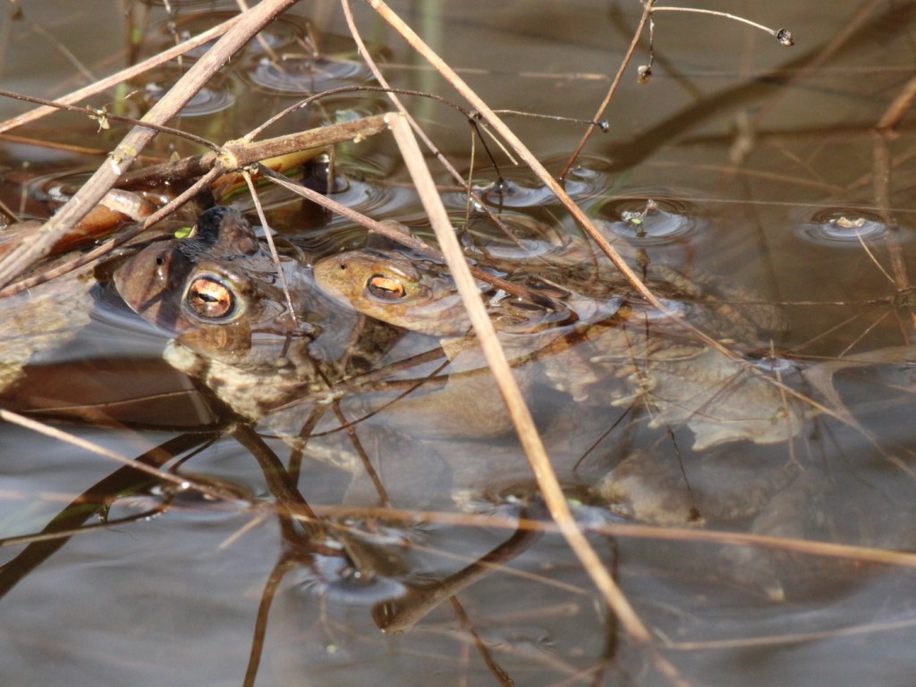 Seit einem knappen Monat ist der Teich eisfrei, trotzdem fanden sich vor einer Woche noch kaum Amphibien im Wasser. Ein paar Springfrösche und Bergmolche, die wahrscheinlich unter dem Eis überwintert hatten, blickten erwartungsvoll nach oben, aber sonst war es ruhig. Von Erdkröten fehlte jede Spur.