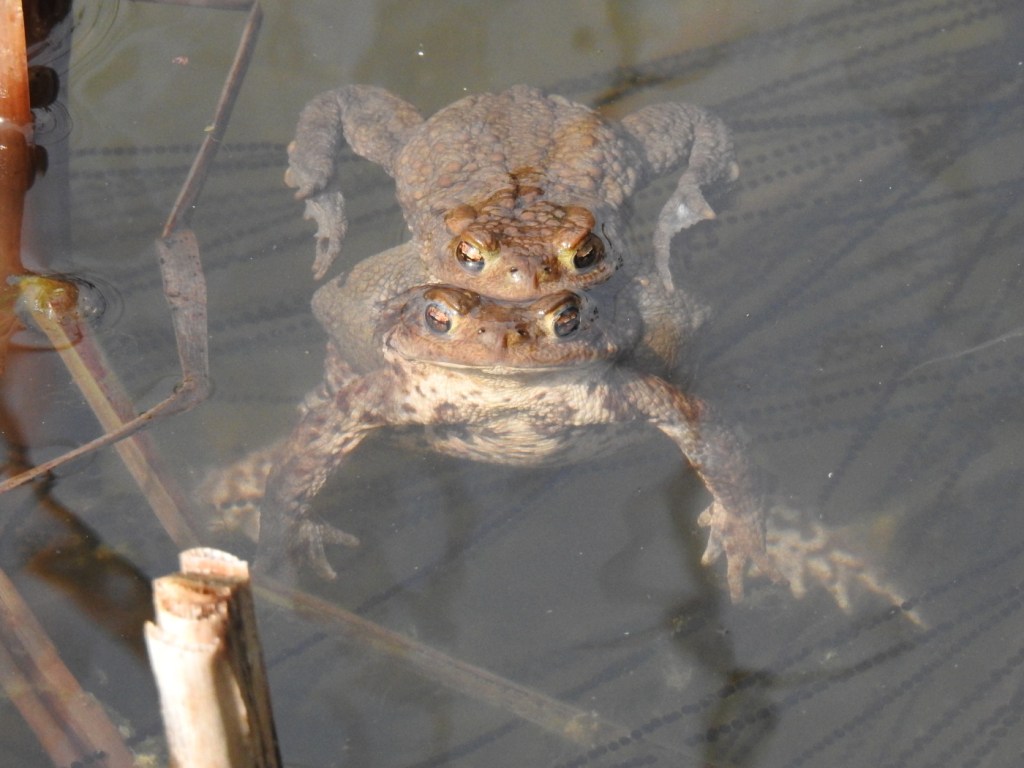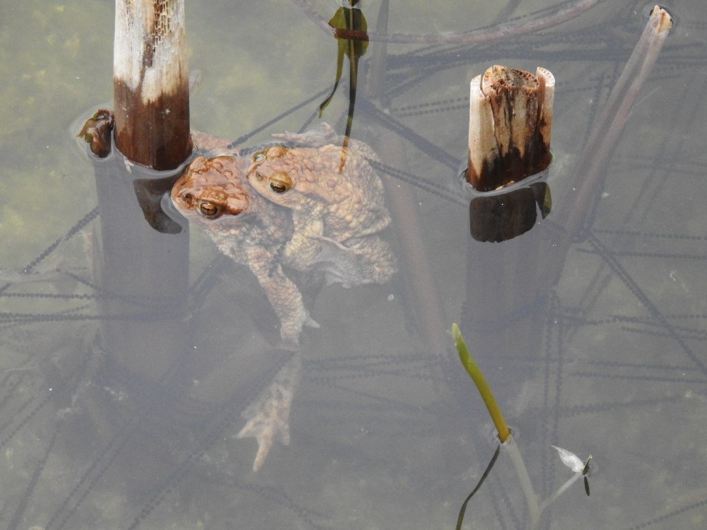 Die Laichsaison der Erdkröten ist bei uns für dieses Jahr zu Ende, und sie war anders als sonst. Im Jahr 2016 haben zum ersten Mal zwei Pärchen in unserem Teich abgelaicht. Danach ging die Zahl mal rauf, mal runter, im Schnitt waren es meist um die fünf erfolgreiche Paarungen. Dieses Jahr wurden wir völlig überlaufen. Bei zwanzig Pärchen habe ich aufgehört zu zählen. Es waren sicher deutlich mehr. Ich habe einfach den Überblick verloren.