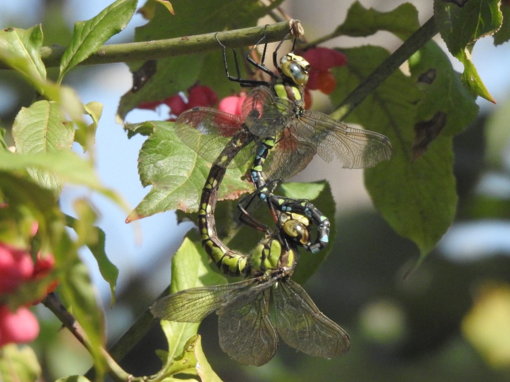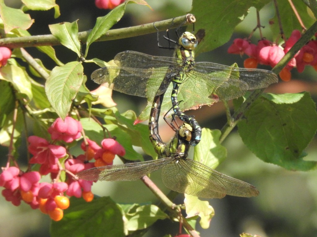 Jetzt sind die Großen Heidelibellen zwar meist die letzten, die im Herbst noch unterwegs sind, und die Temperatur liegen in der Stadt zwei, drei Grad über dem Umland, aber Mitte November überrascht so reges Fortpflanzungsteiben dann doch.