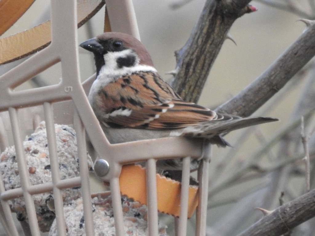 Die meiste Zeit musste ich allerdings die Blaumeise fotografieren, denn die Gartenvögel haben eine klare Rangordnung: Kommt die Blaumeise vorbei, macht das Rotkehlchen höflich Platz, und zeigt sich auch nur ein Feldspatz, haben alle anderen sowieso Pause.